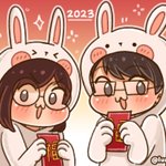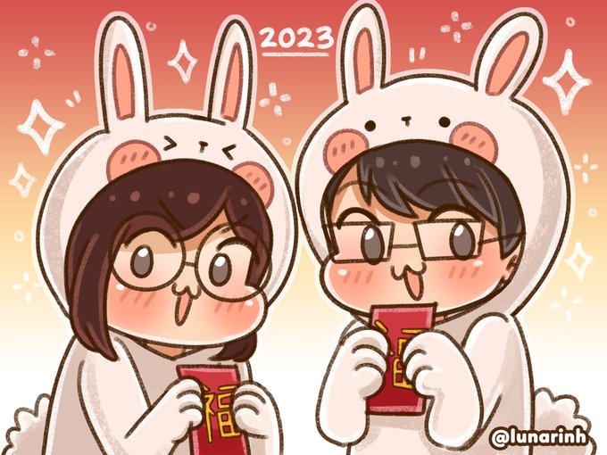 Happy Lunar New Year!! Here's a little doodle of me and @shintocshi to celebrate❤️ #LunarNewYear #LunarNewYear2023 #YearOfTheRabbit #ChineseNewYear #illustration