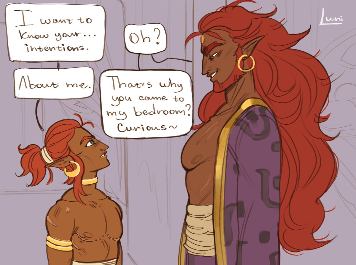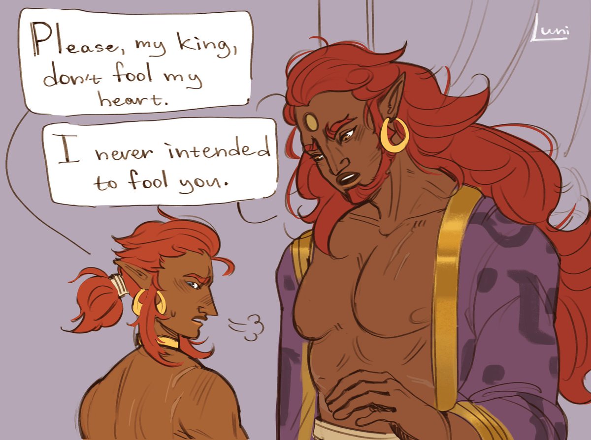 still my Ganlink with Gerudo!Link as Ganon’s guard and ummm 😳😳😳 something is going on here (1/2) #botw #legenofzelda
