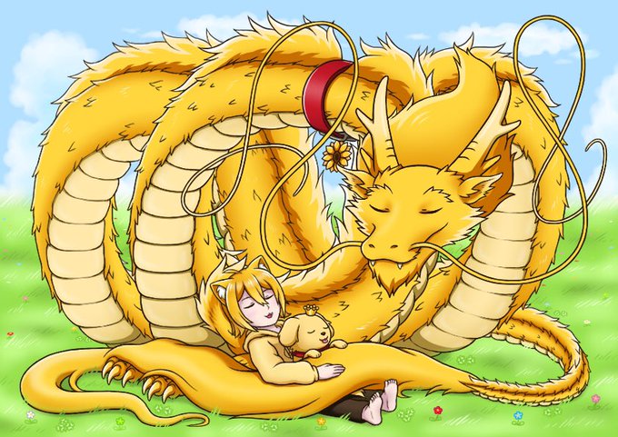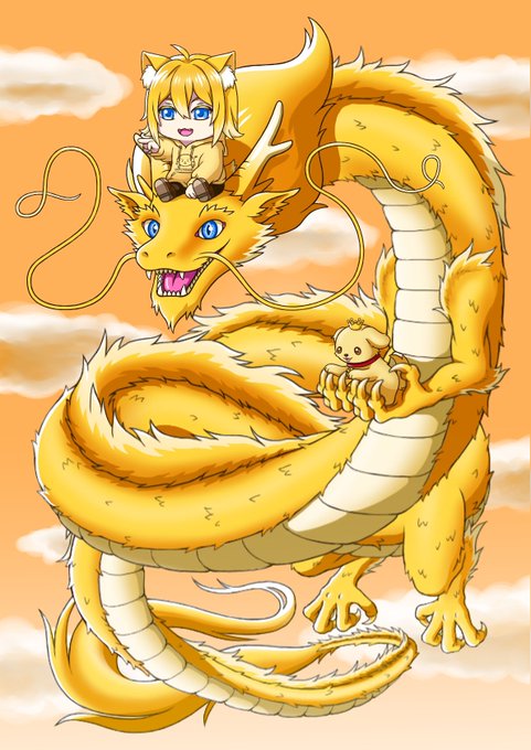 あーるん。くん…お誕生日おめでとうございます…🎂🎉🎊 お誕生日とは関係ないですが…龍に乗って空を散歩しているあーるん。くんのイラスト描いてみました… #あーるんくん誕生祭 #あーるんのいらしゅと #ぷりだぁと