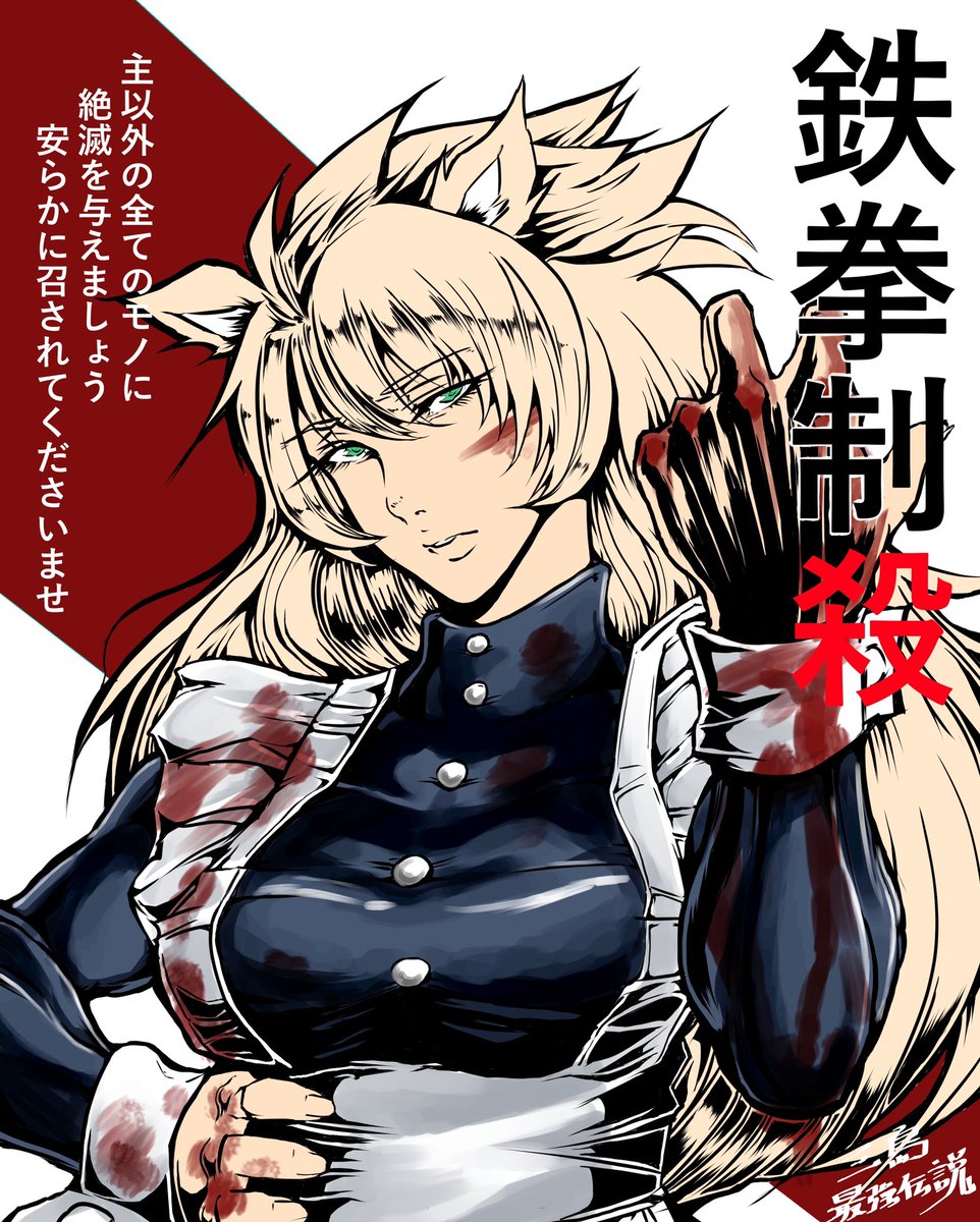 #イラスト #創作 物理で解決する系ケモミミメイドさん