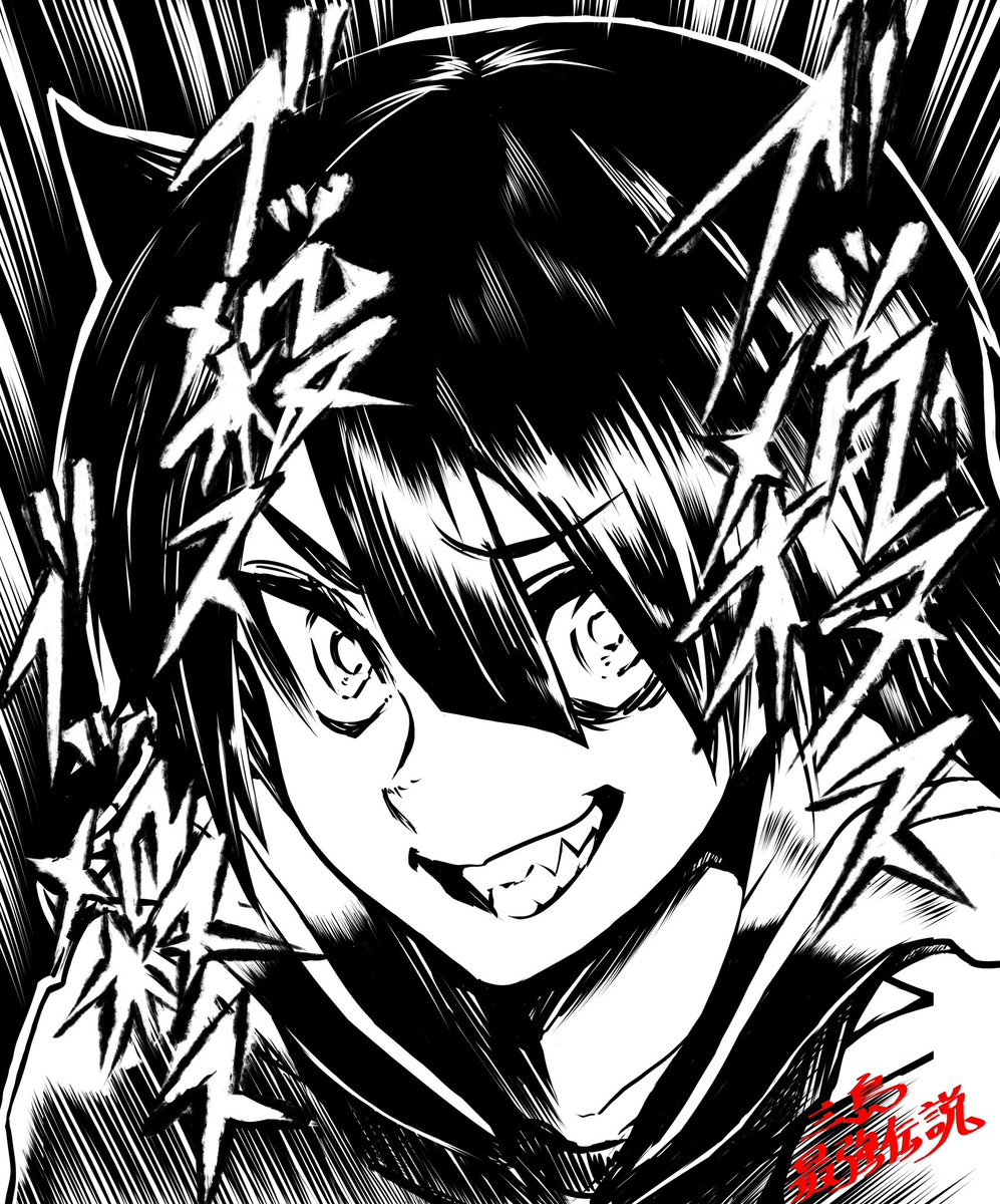 #イラスト #創作 どんなに不利な状況だろうが不敵に笑え。そうすりゃ案外思ってるよりも悪いようにはならねーんじゃね? って事で俺らしい一枚が出来上がりました