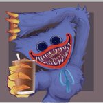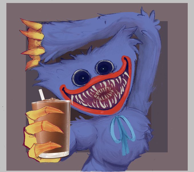 1- me frustre por no saber que detalles darle, piensen antes el como lo van a pintar nenes :,D 2- mira huggy te quiere x eso te da una chocolatada 💙 💝 #huggywuggy #huggywuggyfanart