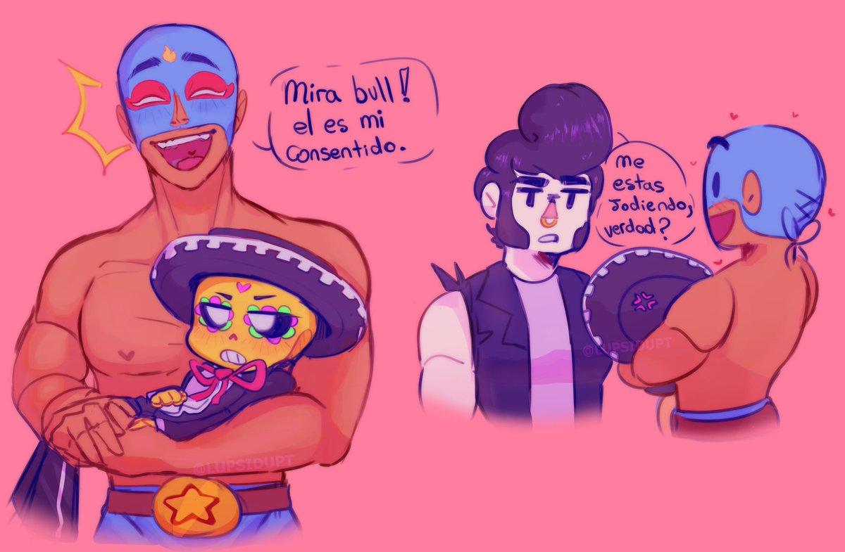 Me gusta el primo x bull pero también el primo x rosa. Y creo q primo le dedicara canciones rancheras de amor jssjs💜💙🖤 🌈#brawlstarsfanart #BrawlStarsArt🌈