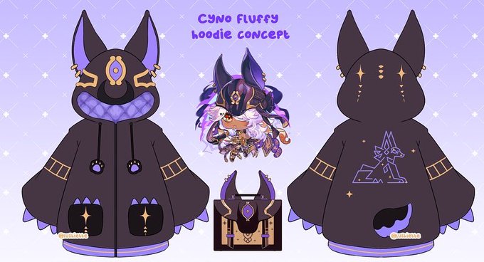 Cyno fluffy hoodie Cleaned version + back💜 I’ll be working on getting sample out for these soon!! Thank you for your love!💜 There might be changes in the details, depending on manu’s advice! #cyno #cynohoodie