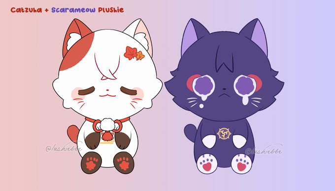 RT appreciated❤️💜 Interest check on Catzuha Plushie~ ///Scarameow plushie is in the sample phase! :> I've always wanted to do a catzuha plushie but gotten some requests for him so I finally got down to do it! #kazuha #scaramouche