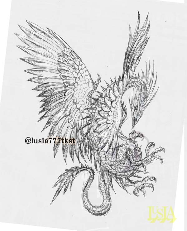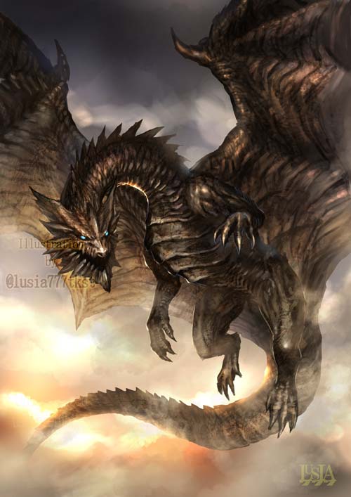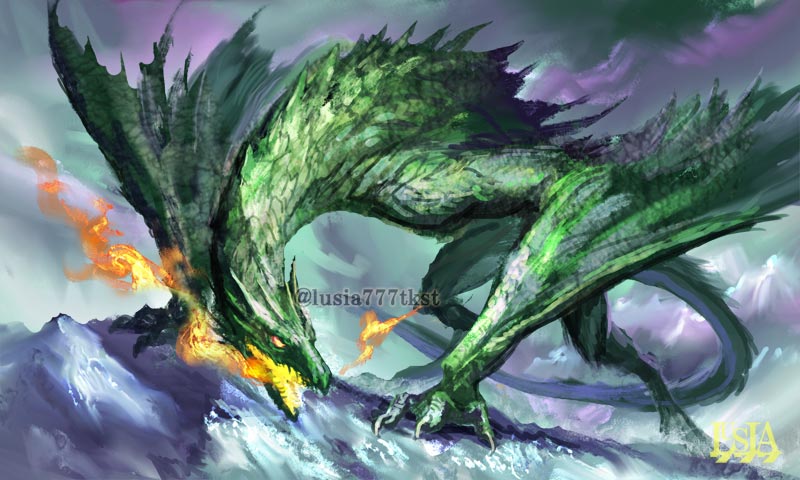 083/リントヴルム 古くは大蛇やシーサーペントの姿だったが近年では翼を持つ姿でも描かれるドラゴン。またはその総称。 すごいスピードで飛び、夜空の流星はリンドヴルムが飛翔によって発光した姿と言われていた。 翼を持たないものはリンドドレイクという。 #lusia777_artworks #ドラゴンイラスト