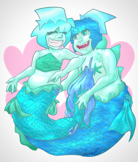 Shark-inspired merms being cute and playful together. 😚😋🦈 #digitalart #mermay #mermay2021 #artistsontwitter
