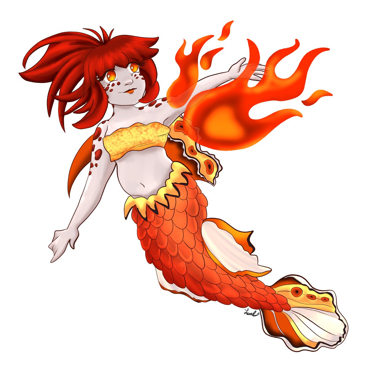 Running a little behind schedule, but that's okay! Here's my Flaming Prawn Goby merm for @EverSoHappyArt's Mermay prompts! 🤗🔥✨🧜♀️ #mermay #mermay2023 #artistsontwitter