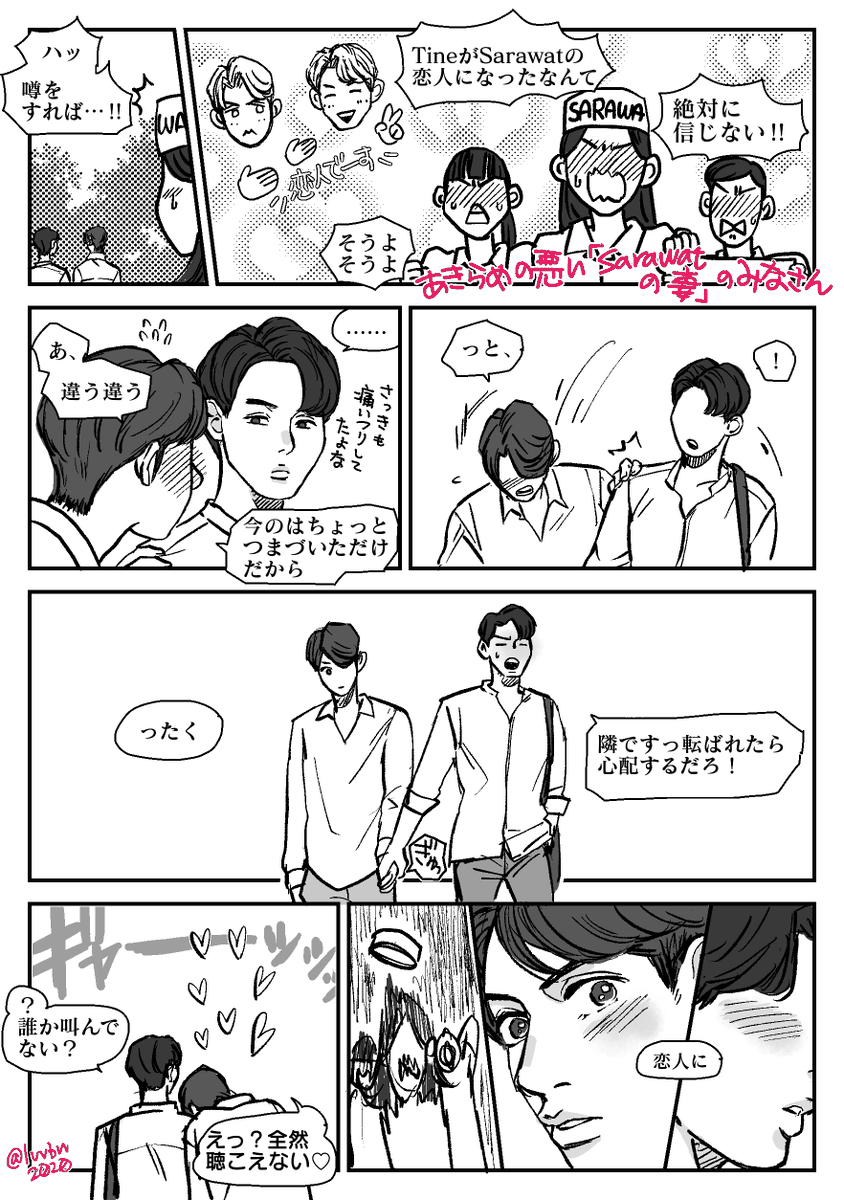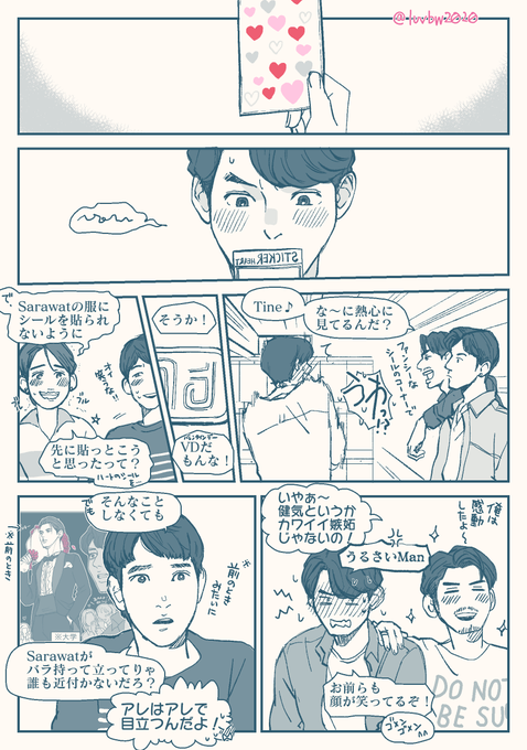 バレンタイン過ぎたけどバレンタインサラタイ漫画2022です!!!(続いてはいないけど去年のネタも少し出てきますので一応引用RTしておきます) Still以降の設定(大学生)です。ずっとお互いかわいい(?)嫉妬してて… 全5P(1/2)※リプに続けます #SarawatTine創作 #サラタイ twitter.com/luvbw2020/stat…