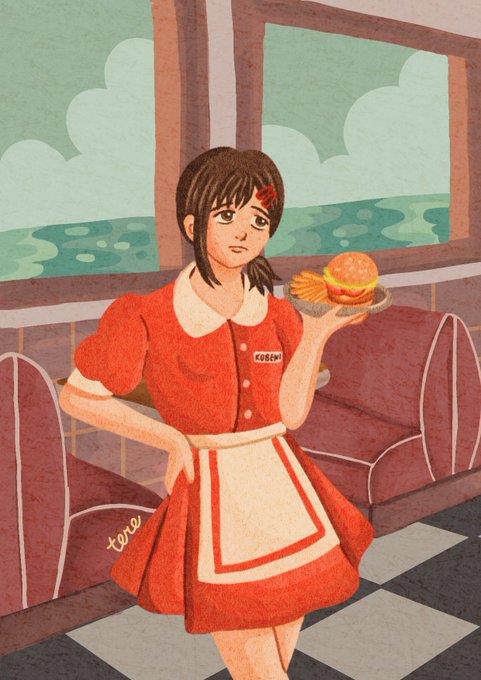 #kobeni as 50s diner waitress serving burger and fries. #chainsawman #csm #chainsawmanfanart #artidn #zonakaryaid