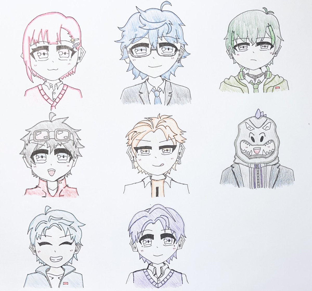 ライブの手紙用に描きました〜!!🙌🏻 滅多に絵を描かないので皆さんの特徴を捉えて描くのが難しかったです、、💧 ※大きさが違うのは許してください🙏🏻 #メメリ絵 #メメントリ