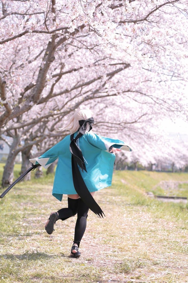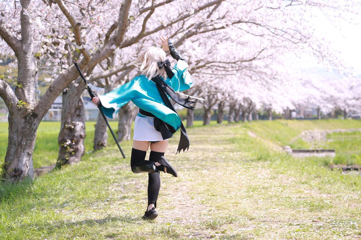 #レイヤーさんはコスプレの時のオフショットを晒して下さい 【コスプレ注意】 いい感じの風にテンション上がって移動してる邪ンヌ 鯉と遊んでる沖田さん 一回ジャンプしてみたかった夢装沖田さん 楽しかったー