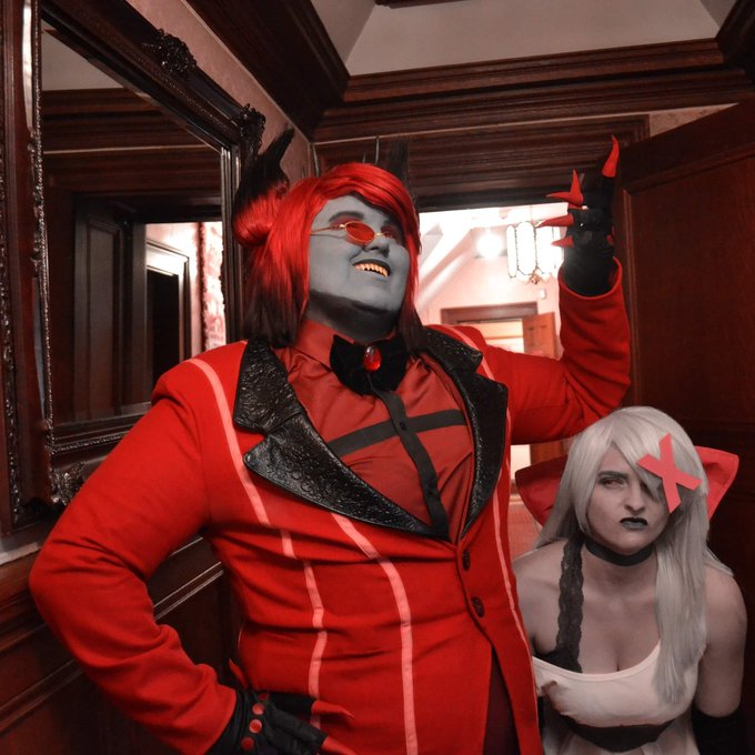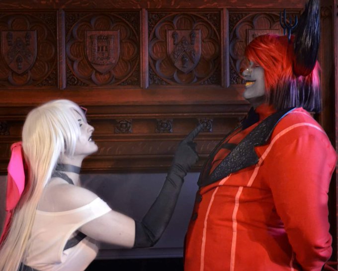 "Charlie listen to me, you can't believe this creep. He isn't just a happy face." Vaggie/Editor: @ samspics118 (IG) Charlie: @jamblute 📷: @SakuraYumePhoto #hazbinhotel #cosplay #charliemagne #vaggie #charliemagne #alastor #radiodemon #cosplay #plussizecosplay
