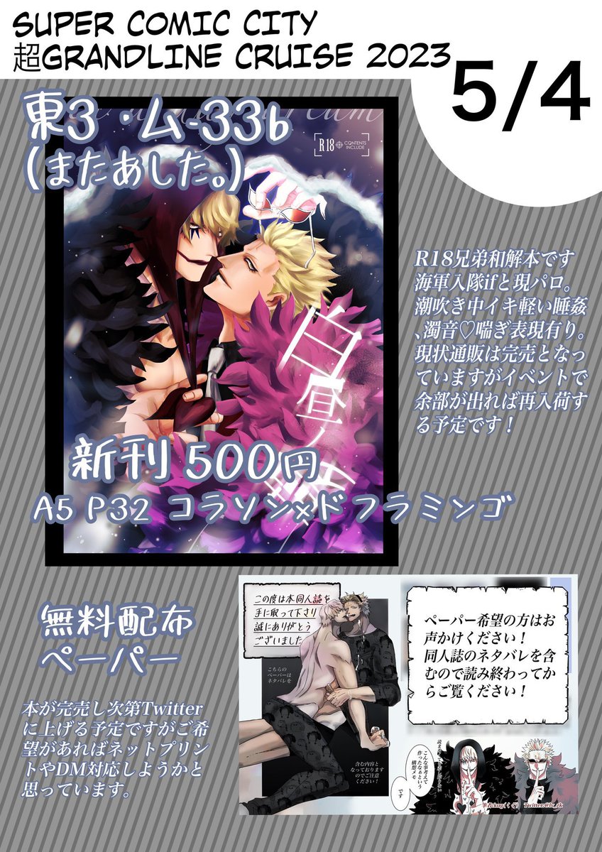 1 4 当日開場直後から頒布出来るようになりました!友人お買い物ありがとう…! 本人幼少期ローのコスプレしています。当日はよろしくお願い致します☺️🙏 23/05/03 17:58