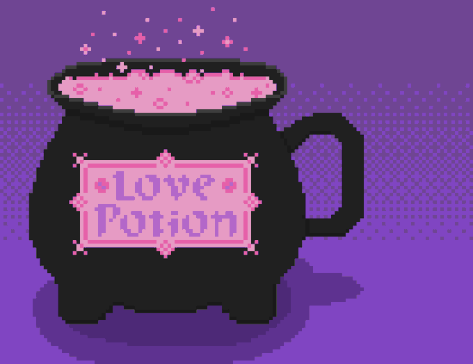 Need a lot of love & magic today ! Soo.. I decided to make daily #NoveltyMug looking like a cauldron with some love potion in it💜 @Pixel_Dailies #pixel_dailies #pixelart #ドット絵