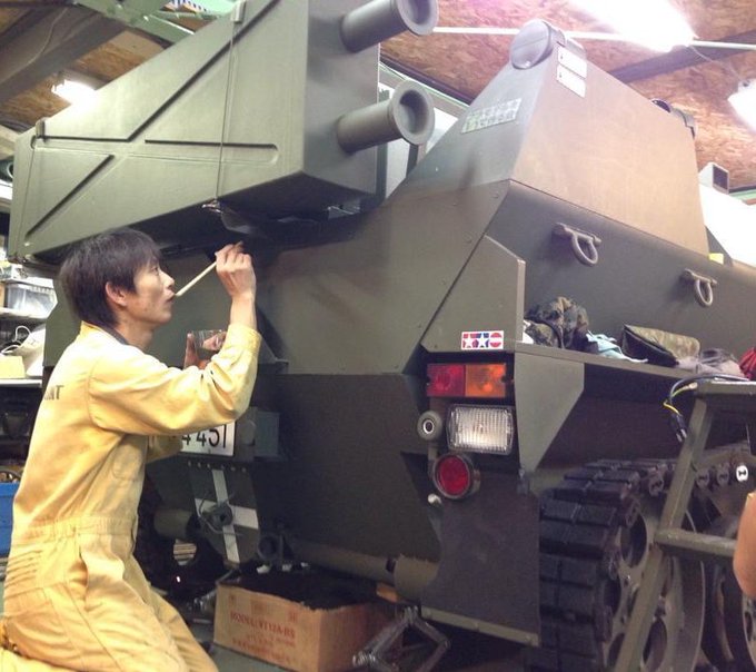 #8月になったのでフォロワーさんに自己紹介しようぜ 1/35スケールのプラモデルを採寸して、原寸大で製作したヴィーゼル2を即エンジンかかる状態で維持しています。 全長4.5m 全幅1.9m 重量1.9t 超信地旋回も可能