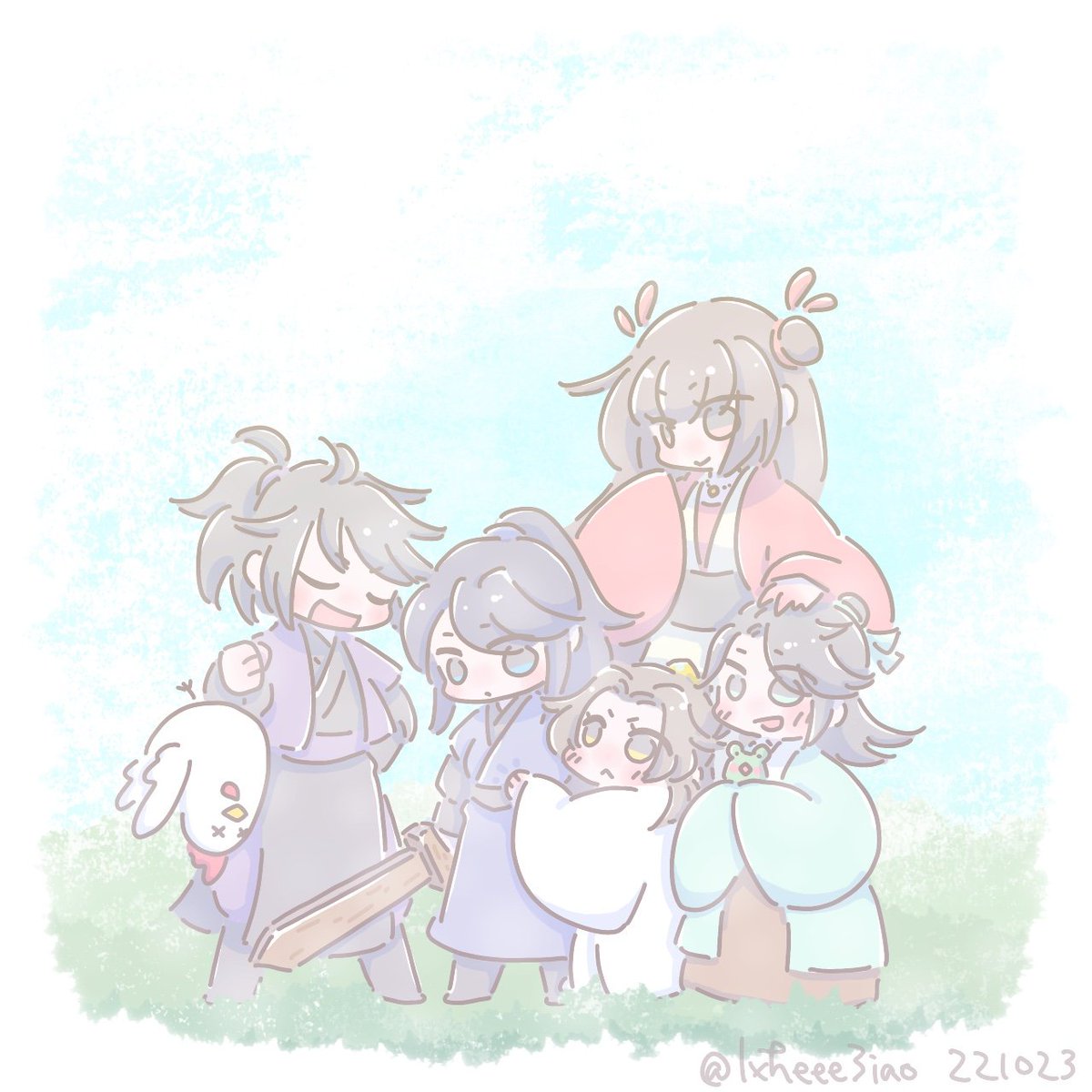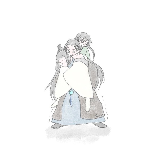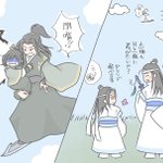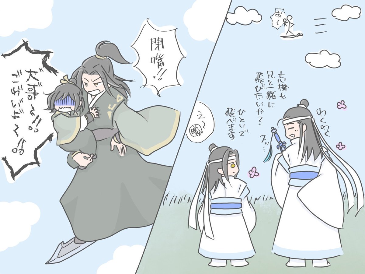 ちいこ懐桑に御剣(御刀?)のお手本見せる子明玦さんとそれを見て自分も弟と一緒に飛びたくなった子曦臣さん。 #魔道祖師