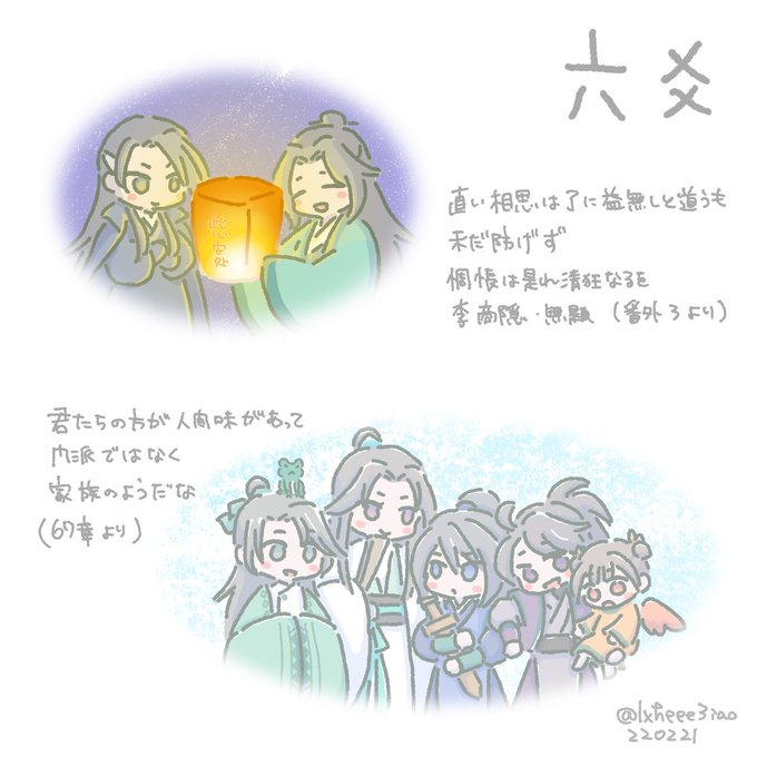 63 117 読了記念の扶摇派三世代。 六爻は最初から最後まで家族愛に溢れた最高のお話でした😊✨💕 #六爻 #liuyao 22/02/21 21:34