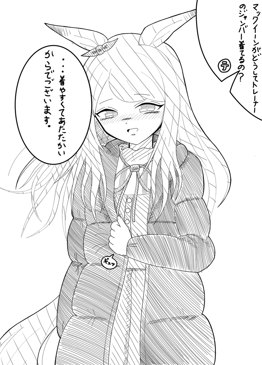 暑いし背丈が合わなくて着づらいのに自分が死んだ後でも私服と一緒に自分のジャンバー着てくれるマックイーンがいる #ウマ娘 #メジロマックイーン #イラスト