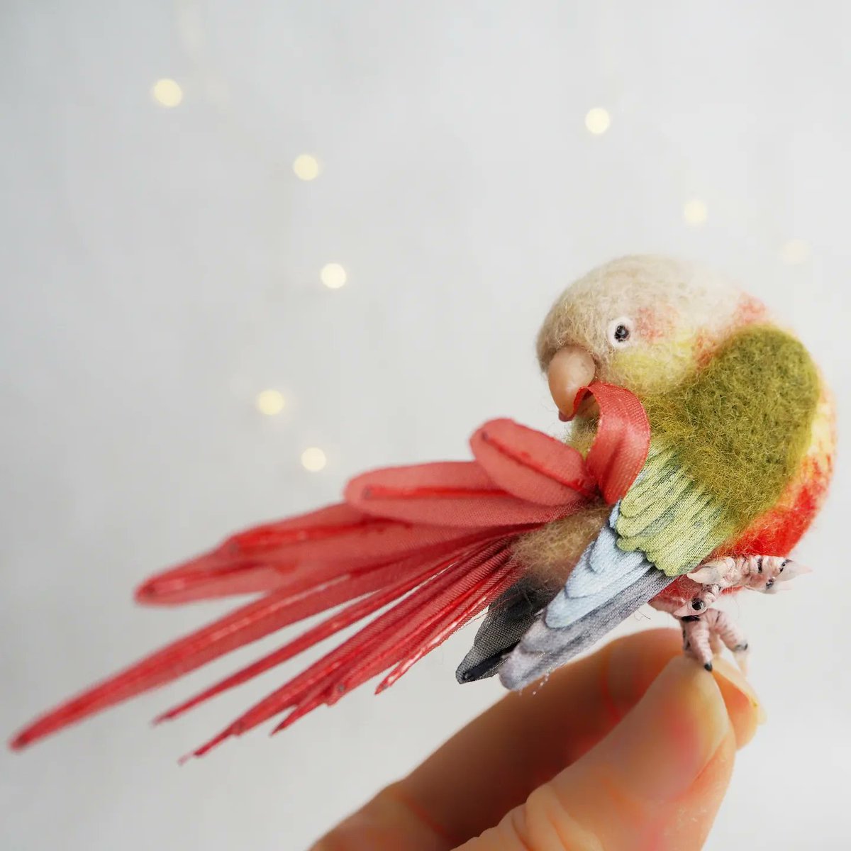 羽繕い中の小さなウロコインコちゃん🦜 これからまだ微調整します😁 #羊毛フェルト #ウロコインコ