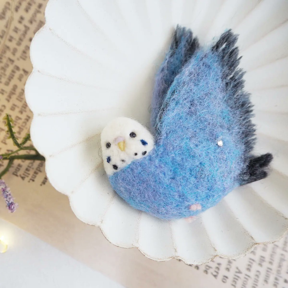 羽ばたきインコブローチ🕊 通販用に色々制作中です😊 #羊毛フェルト #セキセイインコ