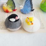 2 25 まぁるいオカメちゃんに、まぁるいお友達が増えました🥰 ペーパーウェイトの文鳥さん🐦 お顔が黒いから写真では分かりづらいですね💦 #羊毛フェルト #文鳥 22/06/23 19:18