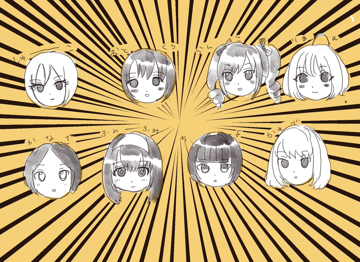 15 56 らくがき 我が事務所の高名8銃士 (千夜ちゃんと楓さんももうちょっとで高名だから入れちゃう) 23/07/10 17:01