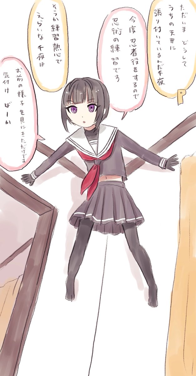 家に帰ると天井に張り付いてる 白雪千夜ちゃん