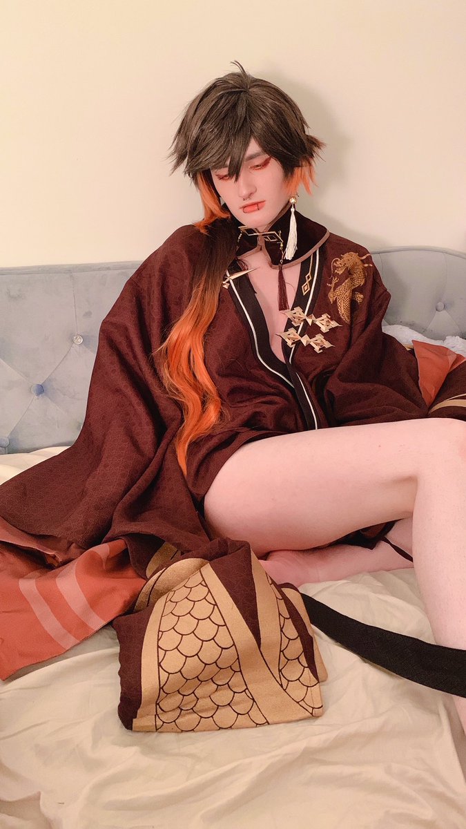 I was feeling tired after taking photos with @rhysiebabey, and it was unbeknownst to me at the time, but he took these of me while I was basically falling asleep.. ✨🔶 #zhongli #zhonglicosplay #GenshinImpactcosplay #genshinimpact #cosplay