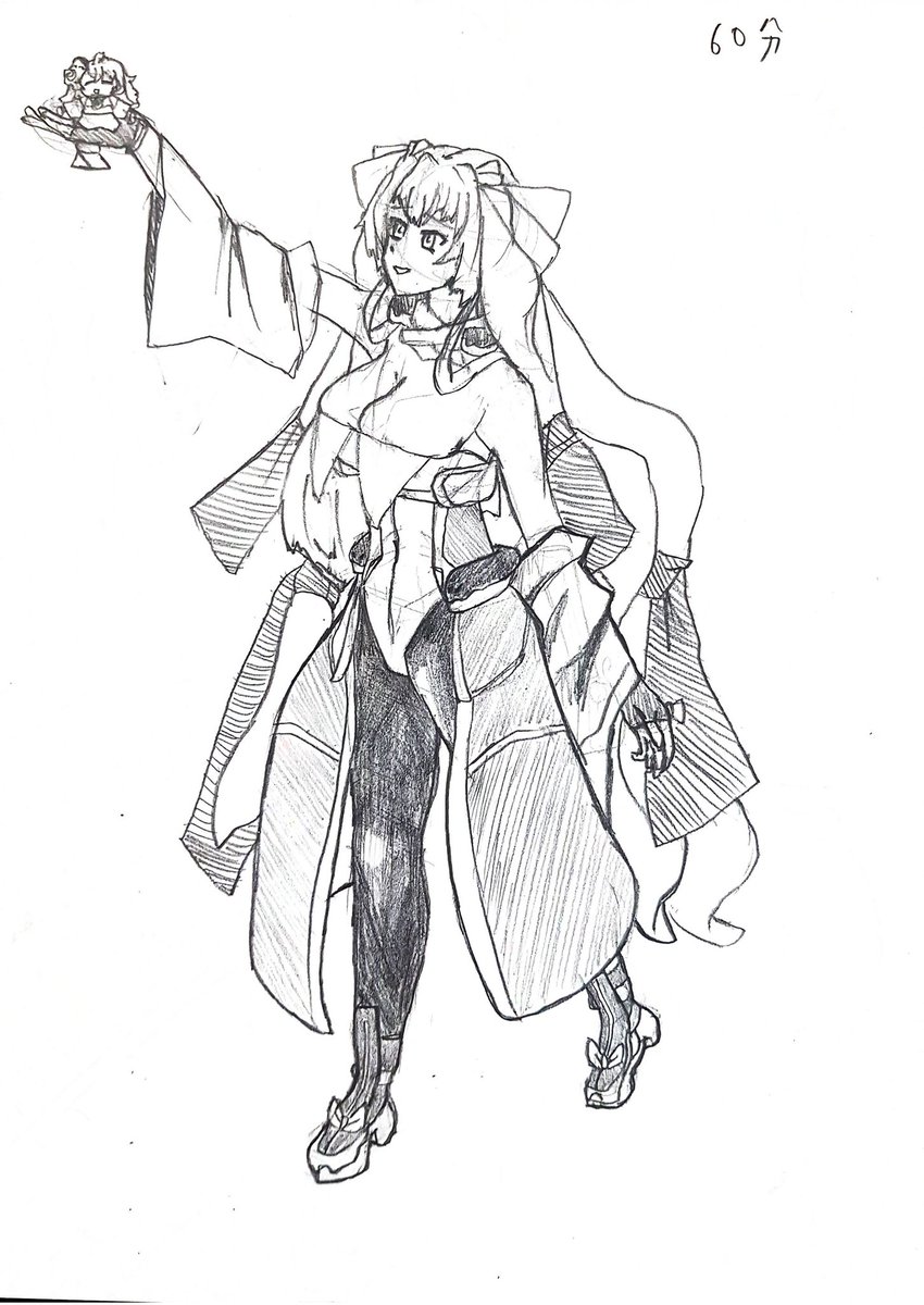 #川上稔作品版深夜のお絵描き60分一本勝負 キツかった。 線が雑でスキャンの方はなんかサックリしない。 いつも思うけど服が全く分らんから描くとき困る。 3分足して輪郭だけ鮮明にしました。 奇麗。
