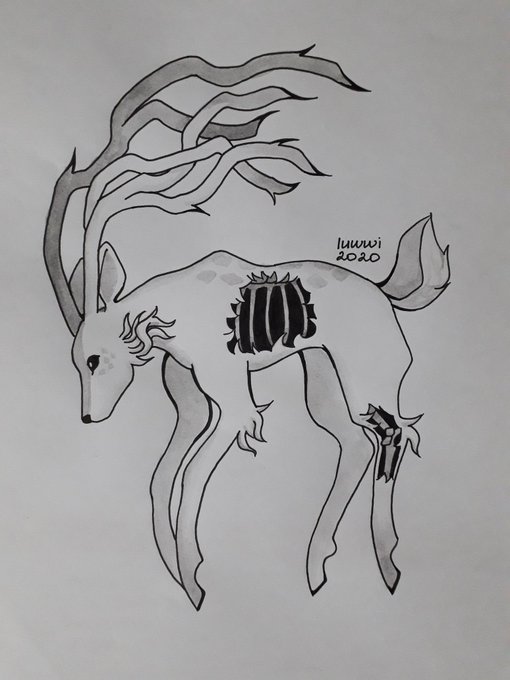 7/31 Прошла всего неделя, а такое чувство, будто я уже год в этом челлендже участвую :') Тема - fancy (причудливый) Решила нарисовать оленя с огромными рогами и торчащими костями :) Хотя изначально хотела нарисовать шляпника #inktober2020day7 #inktober #inktober2020 #fancy