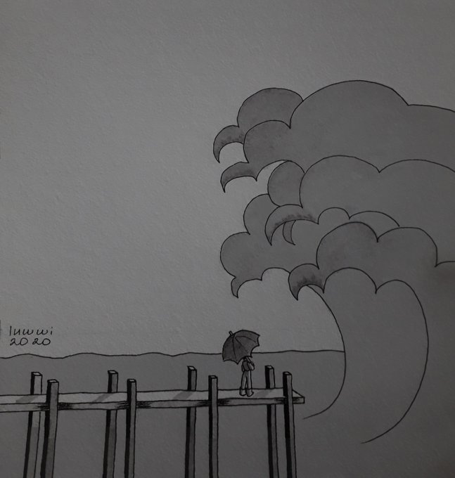 17/31 Тема 17 дня - storm (шторм) Задумка классная, но вот волнам что-то плоховато) #inktober #inktober2020 #inktober2020day17