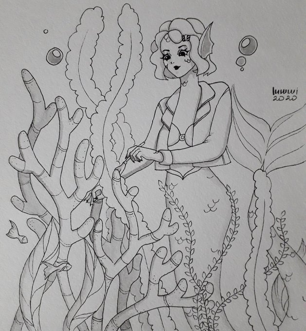 20/31 Тема 20 дня - coral (кораллы) Нарисовала ту девушку с первого дня, которая чистит кораллы ~ #inktober #inktober2020 #inktober2020day20