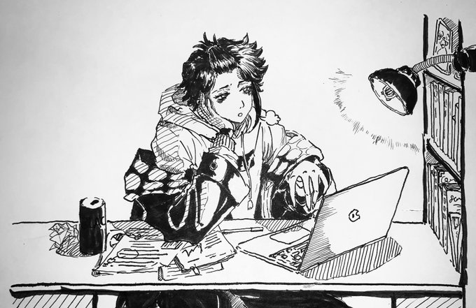 課題頑張る、一応大学生だね 落書き #さ絵ぐさ