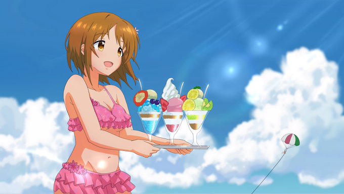 #デレステ5周年 おめでとうございます。 アニメCM良いですね。かな子がみんなにパフェを持ってくるところを描きました。溶ける〜〜 #三村かな子 #デレステ