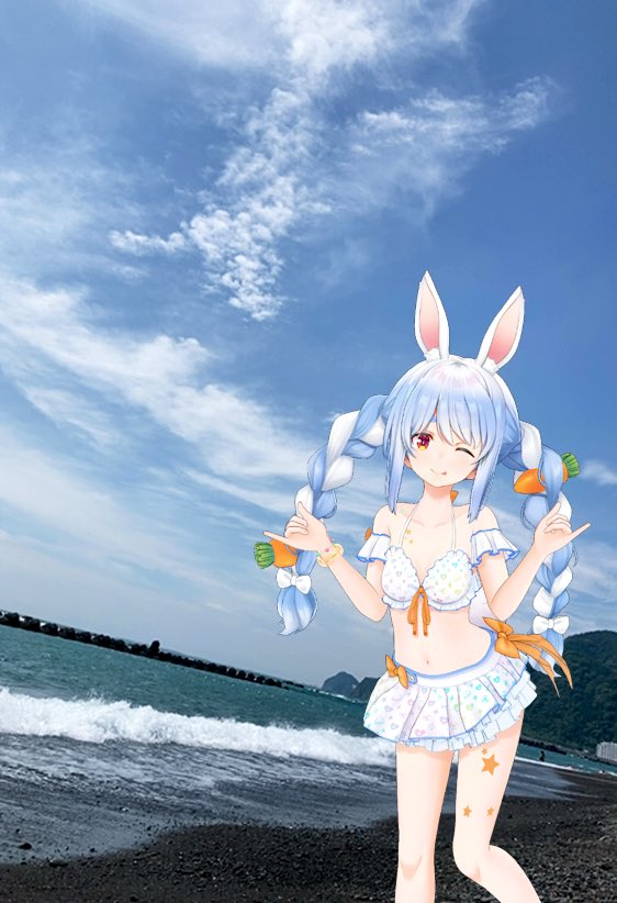 せっかくだから海まで来てみました! ぺこちゃんめっちゃかわいい!! #ぺこらーと #兎田ぺこら #ホロサマPARCOラリー