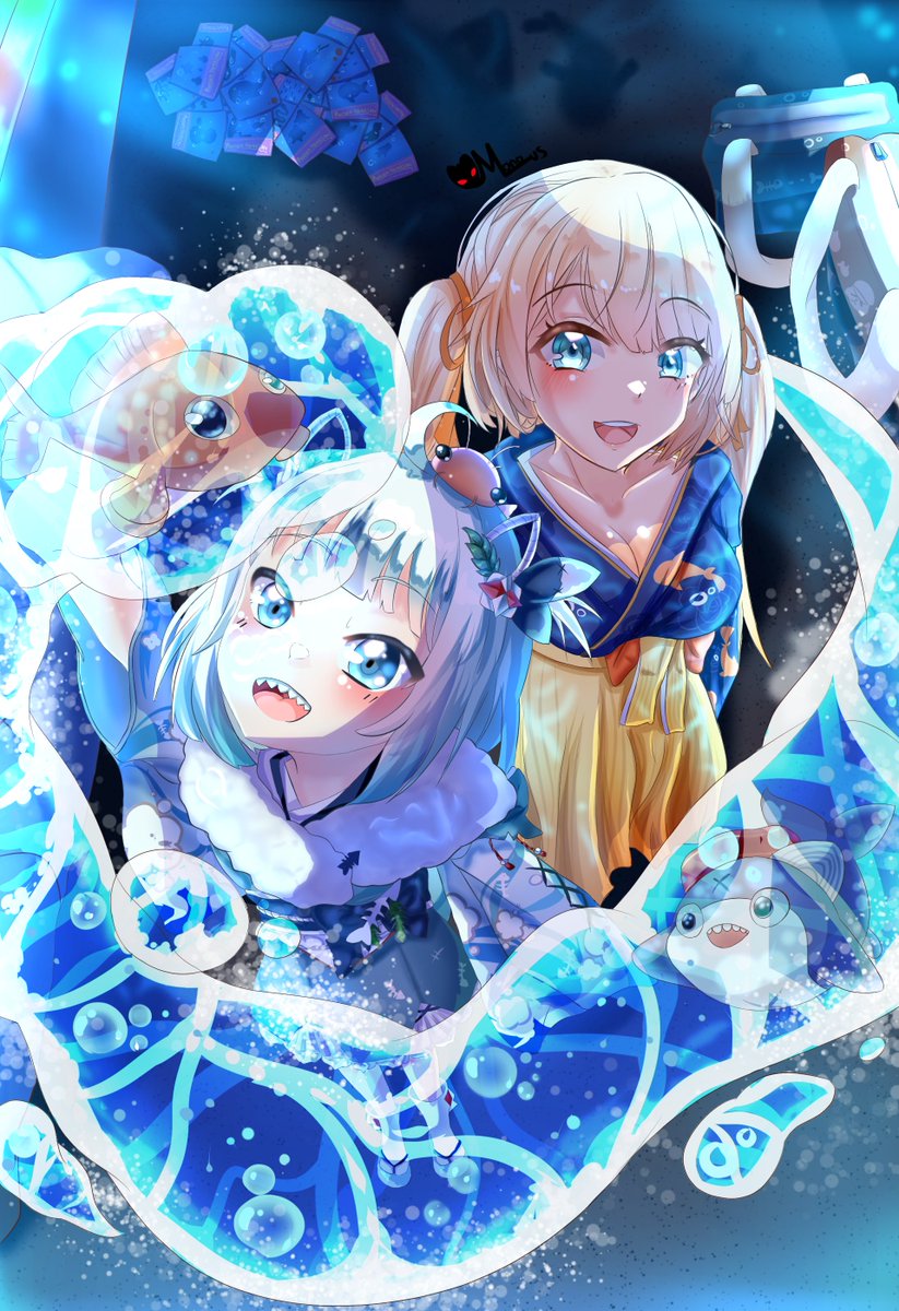 Konbawa everyone! After 1 month of work, I finally finished the aquarium date fan art! 🎉🎉 Big thanks to @HMHandMade1, who helped me with the perspective for the girls!🙏🙏🙏 I hope you'll live it 💙💛 #gawrt#ameliaRT