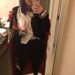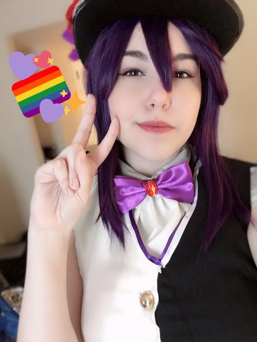 *photos taken moments before disaster* I dressed up as Vox(anne) Akuma with @yuuri_ebooks as Lucy Kaneshiro and @DovelyVtuber as Vox’s stuffed monkey Baba!! #Akurylic #AkumaMatata