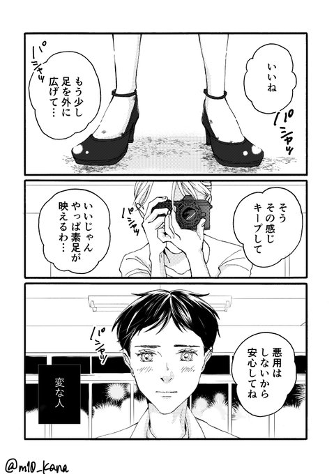 9/4コミティア141新刊サンプルです。(1/2) 『踊り子』42ページ/600円 頒布スペース:ひ41a「箱庭」 以前Twitterに上げた漫画のカメラマンサイドの描きおろし付き、表紙は金インク。 twitter.com/m10_kana/statu… #漫画が読めるハッシュタグ #COMITIA141 #コミティア141