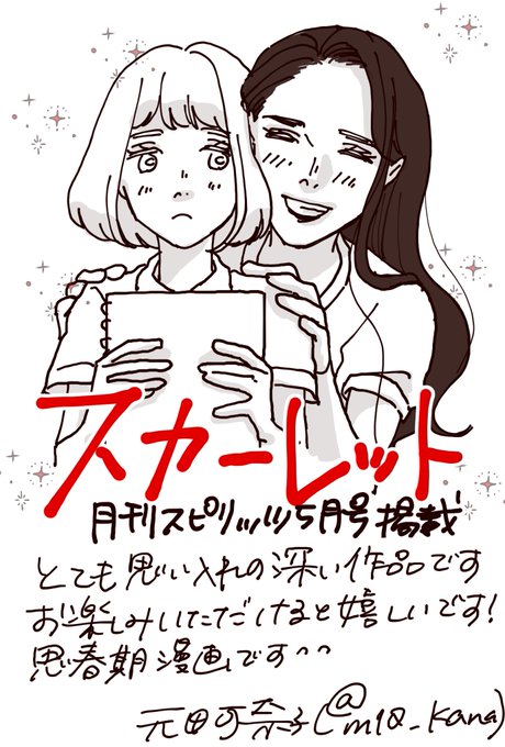 本日発売の月刊スピリッツ5月号に読み切り「スカーレット」掲載させていただいております!長い間温めてきた漫画です… 豪華掲載陣の箸休めに是非! shogakukan.co.jp/magazines/2776…