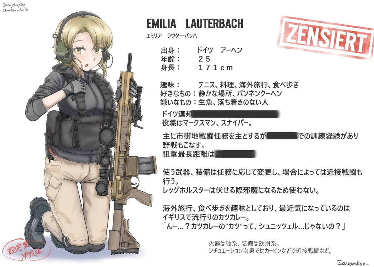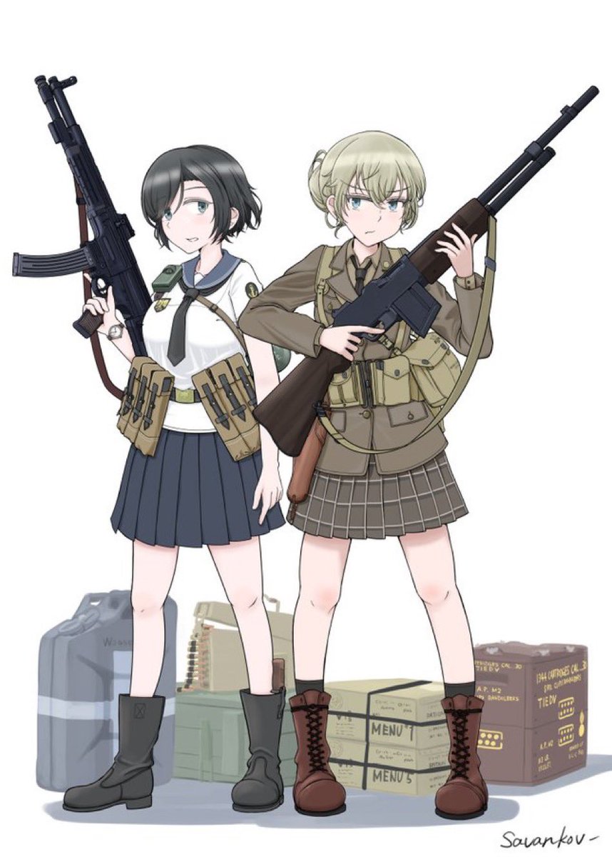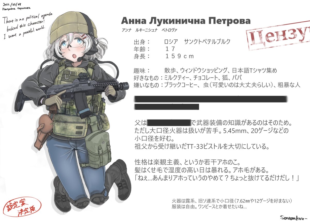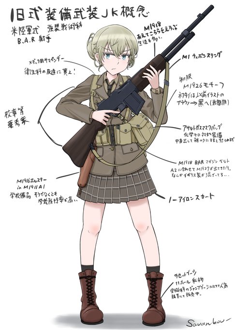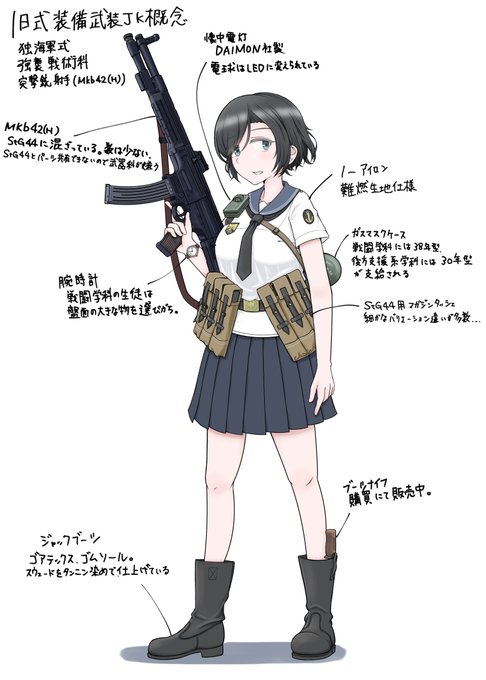 線画に疲れたから旧式装備武装JK概念の設定描いてる