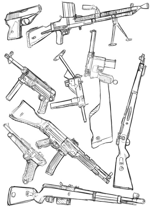 34 186 線画に疲れたから旧式装備武装JK概念の設定描いてる 23/07/08 00:26