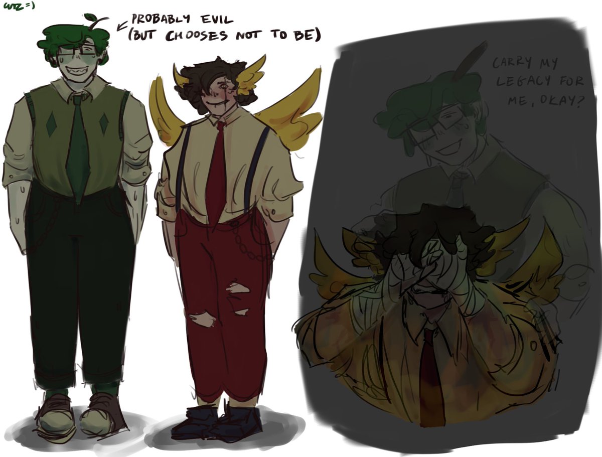 the anatomy is a bit wonky but i promised to turn a doodle of mine into a full piece so here's twins for your lonely soul #technobladefanart #wilbursootfanart #sbifanart #dreamsmpfanart