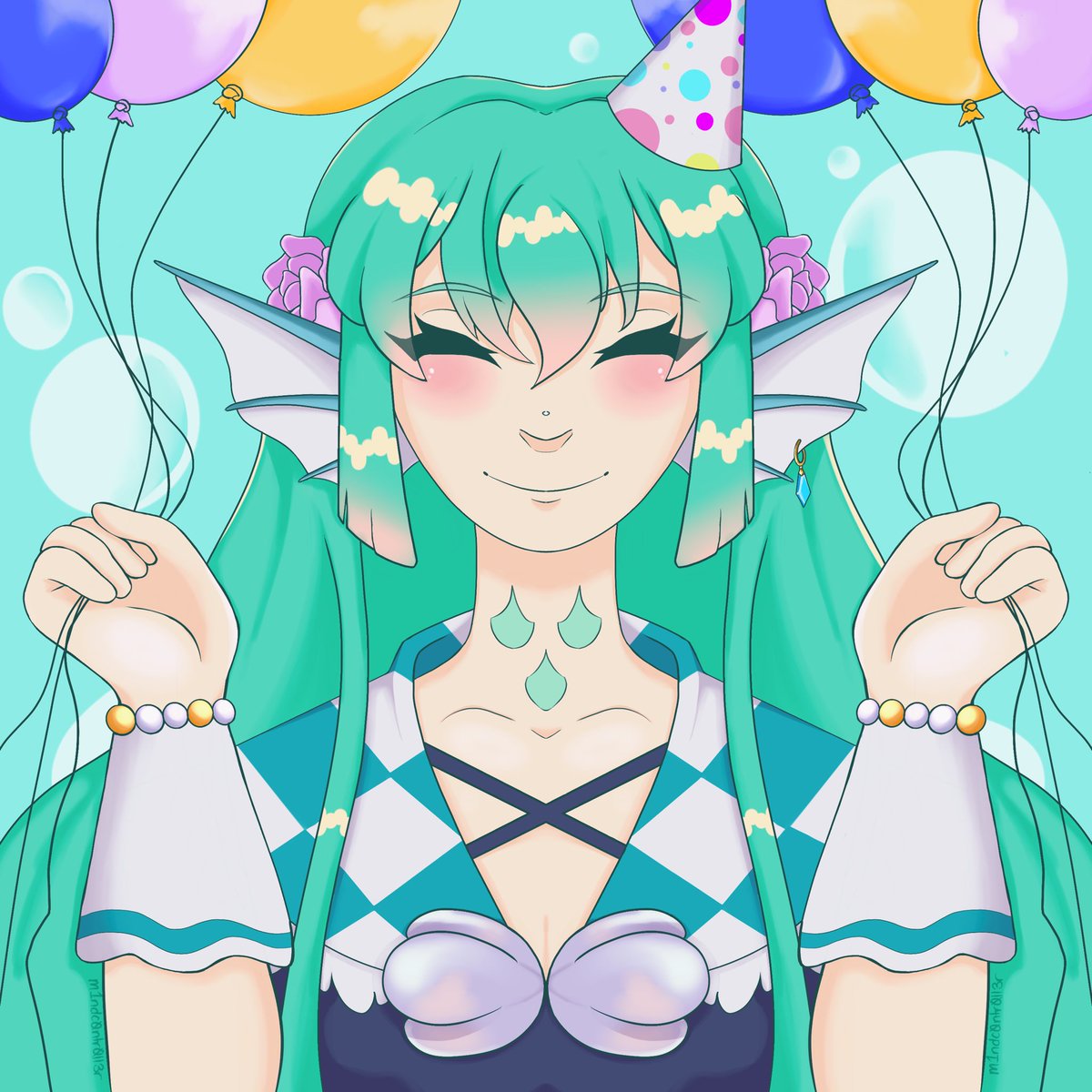 Happy Birthday Feesh!! I got you some balloons and a cool new birthday ‘crown’! 🎈🎉 #FinanaBirthday2022 #Finanart