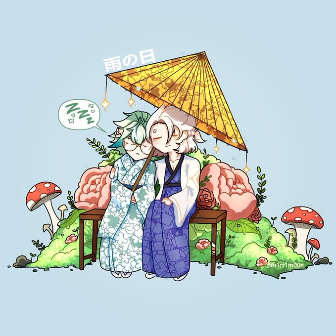 Pretty rainy these past few days, decided to draw AlbeRose sharing an umbrella while dressed in a Kimono & a Yakuta. --- #albedoxsucrose #albedofanart #sucrosefanart #genshinimpactfanart #fanart #aesthetic #alberose #albecrose