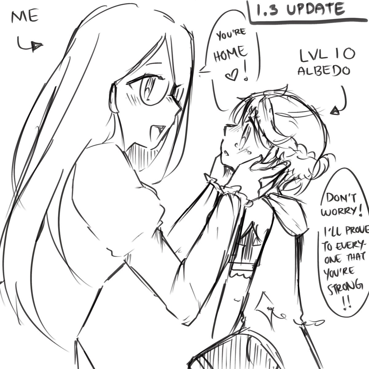 In dedication to making him my Main DPS for over a year now, I decided to make a short comic of me and him <3 I love him like my own son TwT Can't wait for the 2.3 Update !!! --- #genshinimpact #genshinimpactfanart #Albedo #shortcomic