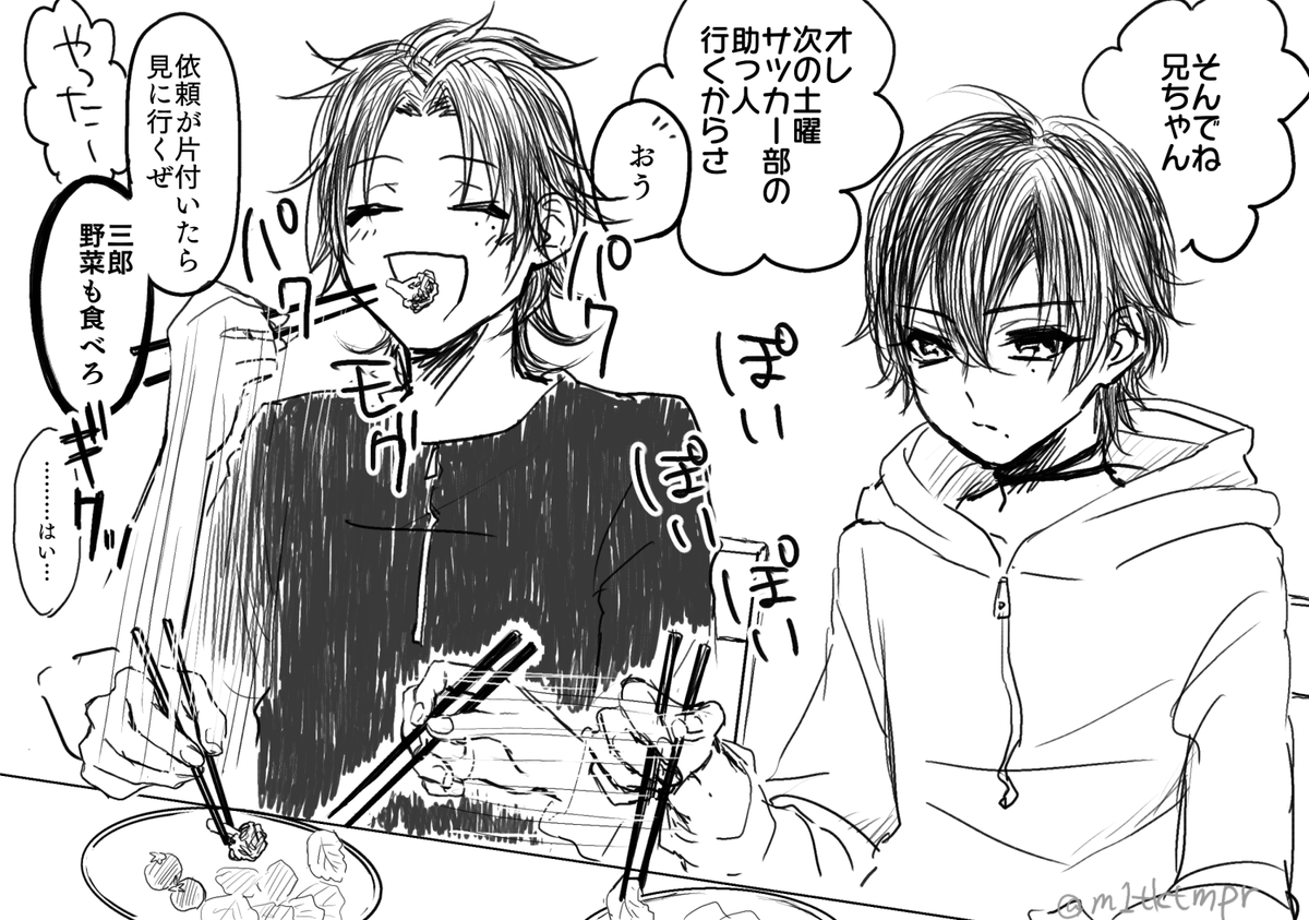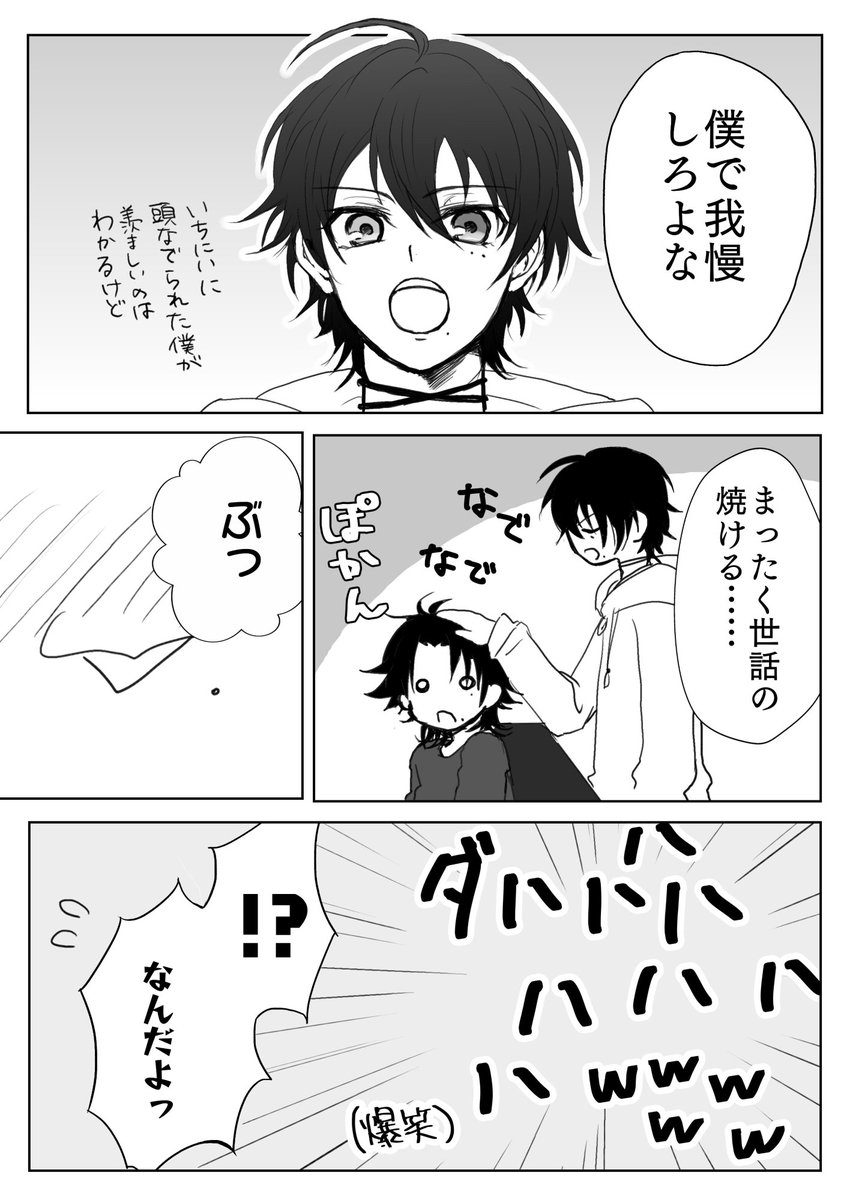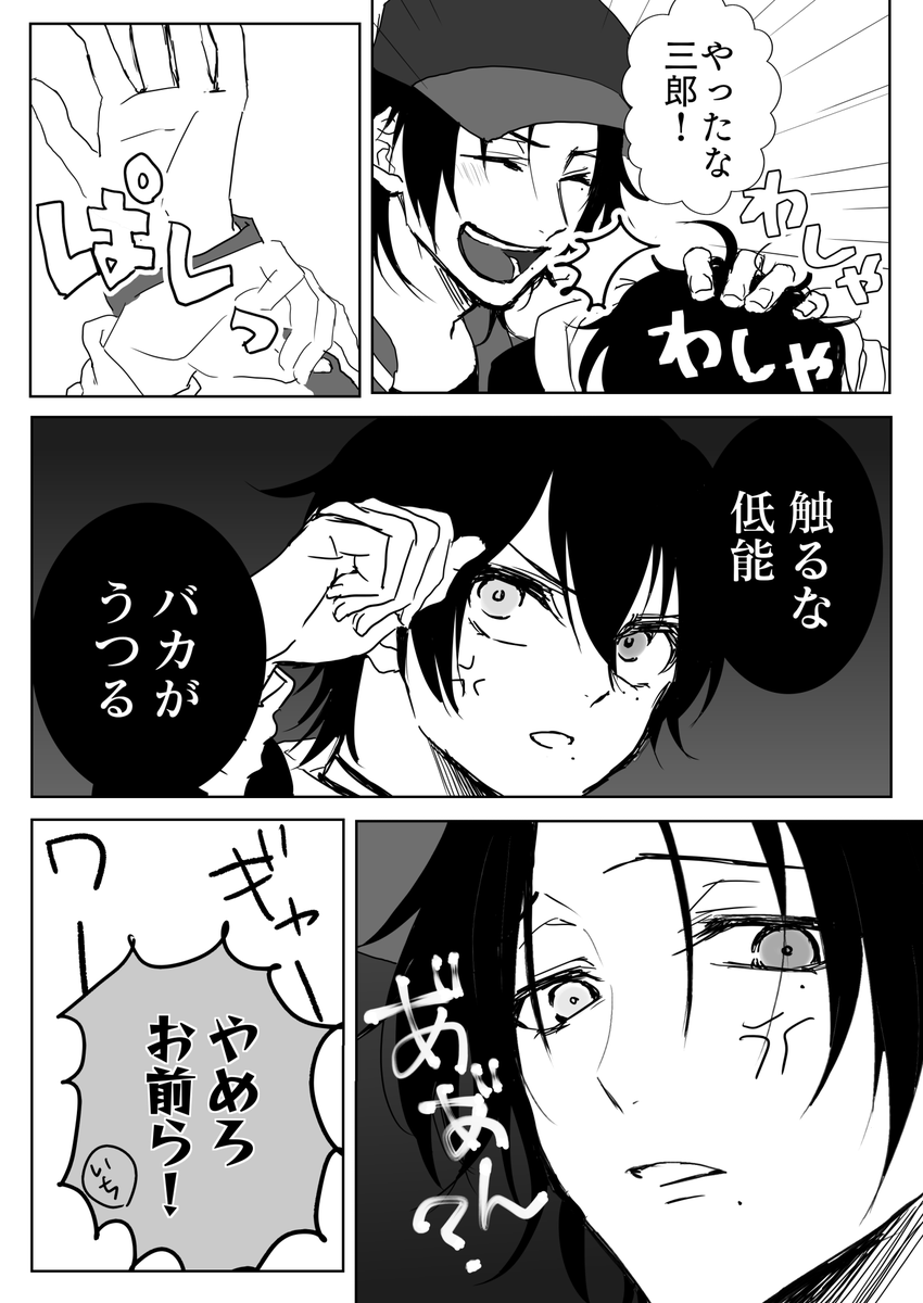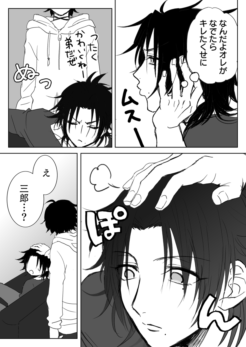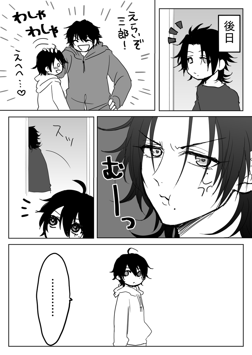 二郎と三郎 ほのぼのエンド さぶろくんは基本的に触られるのは嫌だけど自分から触るのは平気なタイプというかんじ☺️