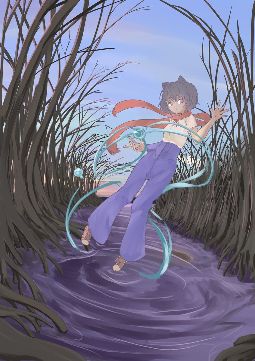 猫( *´꒳`*)緑っぽくなりすぎた気もするけどまーええか。 #らまそい #ともつる #彩華衆 #禍斗妖怪図鑑 #お絵描き