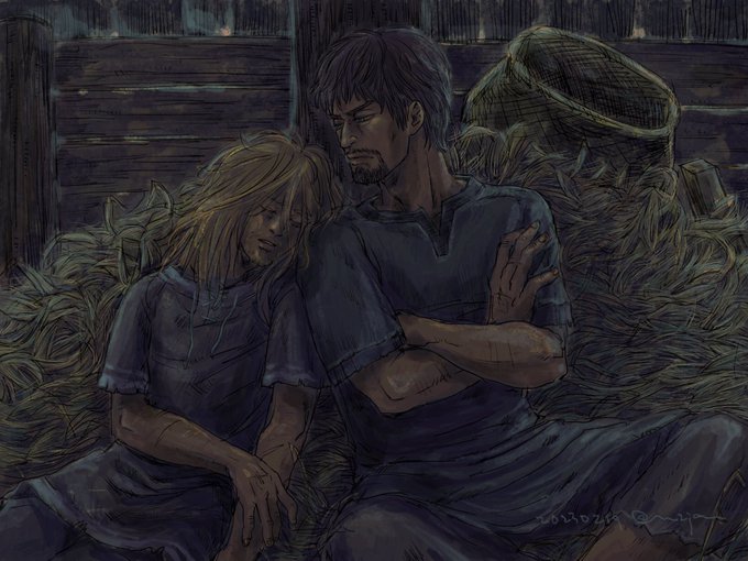 「おやすみ、トルフィン」 #VINLAND_FANART2 #VINLAND_SAGA アニメが始まる前に描いた作品ですが、第4話を踏まえて少し直しました。5.5話的なイメージ。 うなされるトルフィンと同じ夜に、エイナルが何を思って過ごしていたかを知っているのは寝藁だけ