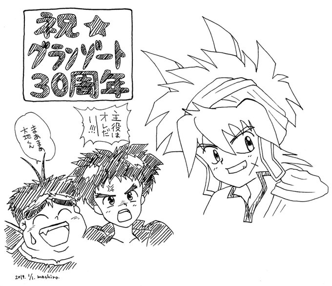 14 52 久しぶりに完全アナログで描き初め。 グランゾート30周年おめでとう~✨😊✨ 19/01/01 21:36